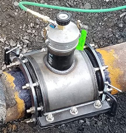 4.模具盖好后,用瓶装氮气加压至高于市电压力。压力表显示密封剂压力。氮气压力保持24-48小时后,即可移除模具。